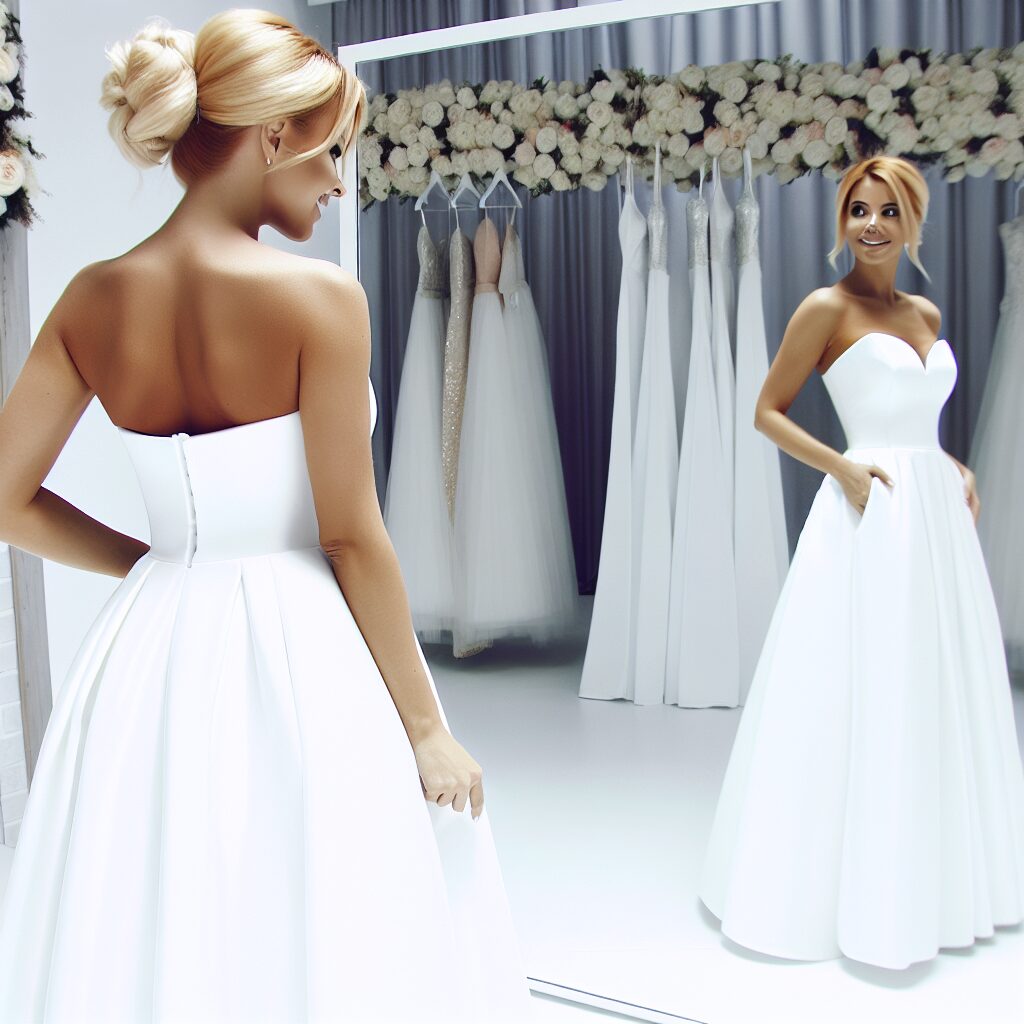Communicate with your seamstress about your weight loss goals. Most wedding dresses can be taken in by 1-2 sizes, but major alterations may be challenging. Schedule your final fitting 2-3 weeks before the wedding when your weight should be stabilizing. Some brides choose to purchase their dress closer to their target size while others buy their current size and plan for alterations.